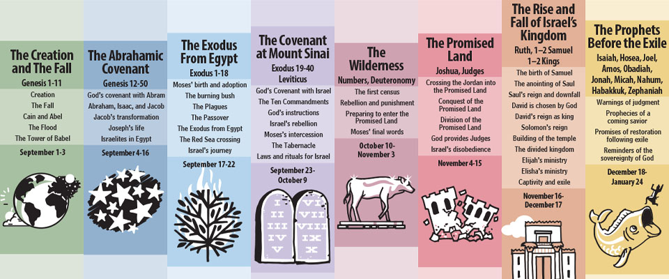 Life gets busy sometimes! If you get behind, don’t worry. Participants should always feel the freedom to jump in today. Start fresh and move forward faithfully. To review what you may have missed, the weekly podcast is great resource to review the previous week's scriptures. Grace's first-ever podcast--Grace Cast--is available twice a month! Grace Cast includes discussions from our pastors, ministry leaders and all generations of our congregation coming together to share their thoughts, insights, tough questions and summaries on our scripture readings. The format is light and conversational. The Bible Project has wonderful videos that will review each book of the Bible, as well as broad overviews and videos that delve into a specific theme. The links to the book overviews are available HERE, and they are a great way to catch up with readings that you may have missed. There are also links to "posters" which give a broad overview of each book. These will also be available in the lobby on Sunday mornings. HERE you will find a multitude of other resources to help you with the reading plan, including videos, podcasts, and articles to bring greater insight to what you have read. You will also find recaps and summaries of sections for times when you may fall behind. Keep up the good work!